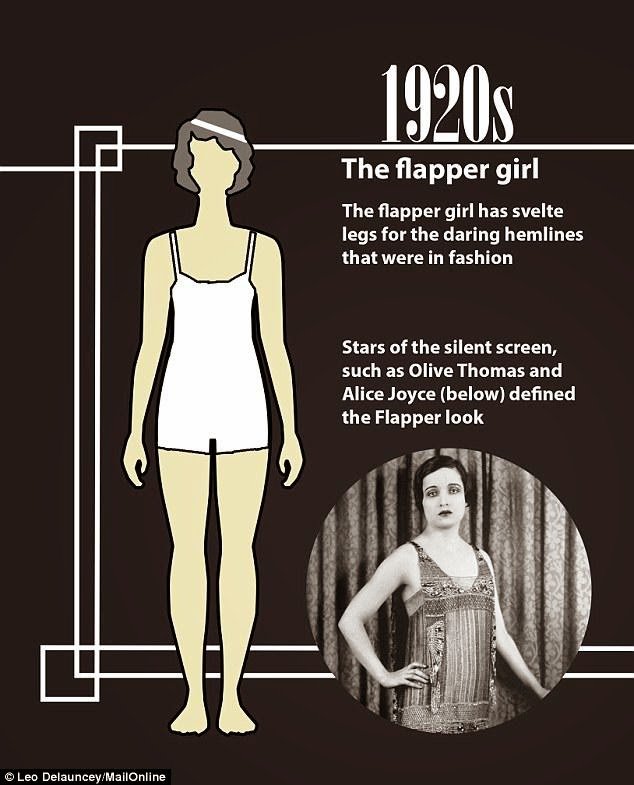 Satu dekade kemudian, flapper girl menjadi body image yang digemari para perempuan. Mereka mengidolakan tubuh tinggi dan ramping. Saat itu pula, kesejahteraan orang Amerika dan Inggris belum memadai. Sehingga banyak anak dan remaja kurang makan, serta ibu rumah tangga harus mengerjakan semua pekerjaan rumah. Dengan cara alami, tubuh pun tetap ramping.