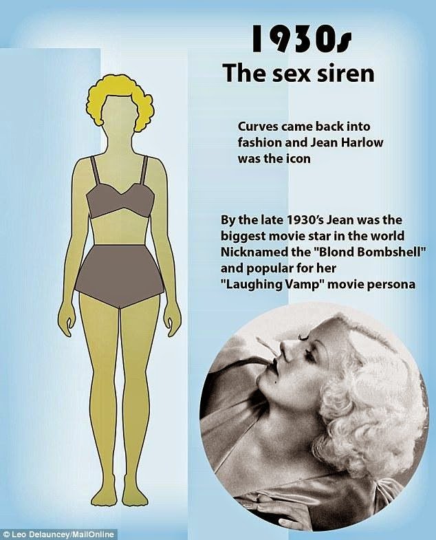 Jean Harlow menjadi ikon fashion dan body image idaman. Harlow terkenal dengan tubuh curvy dan bangga dengan pundaknya.