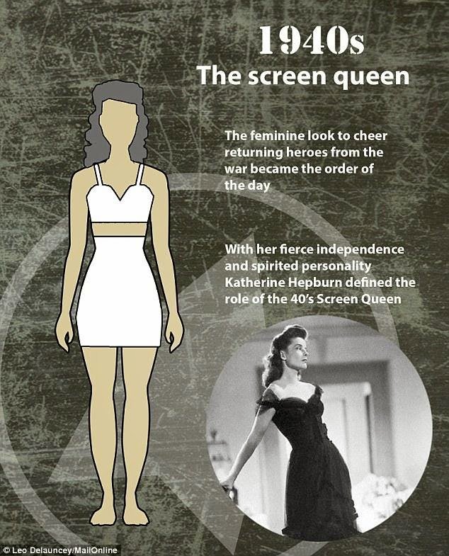 Era 40an juga dasar bagi perempuan untuk memiliki tubuh lebih tinggi dan ramping. Pasalnya, pemerintah menetapkan bahwa setiap anak berhak atas sepertiga dari setengah liter susu per hari, sehingga mendorong pertumbuhan tulang yang kuat. Ikon perempuan bertubuh indah dan berwajah rupawan adalah Katherine Hepburn.