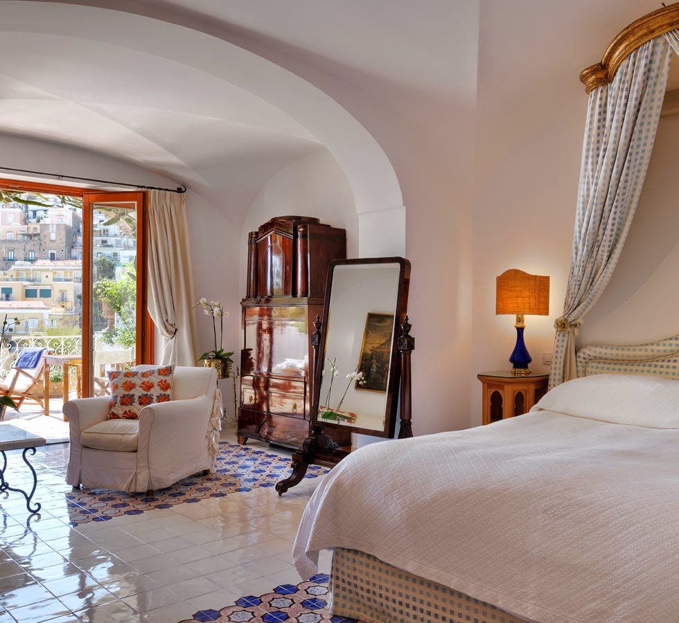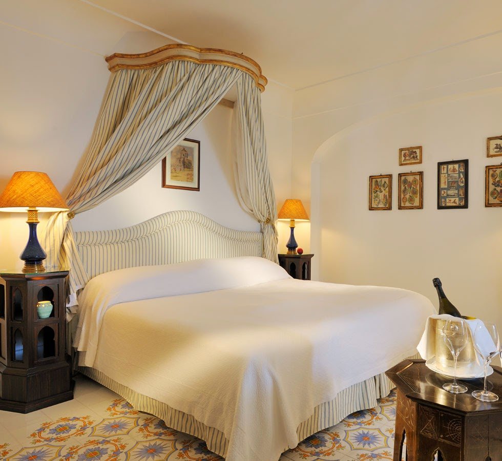 There is a wonderful spa with bio-sauna, Turkish bath and natural Aveda products. At Le Sirenuse, guests can begin at the champagne and oyster bar and then progress to Michelin-starred restaurant La Sponda, where you can feast on shrimp ravioli with tomatoes and buffalo-mozzarella fondue, and line-caught sea bass with capers, ginger and sweet garlic. Guests who like activities can enjoy yoga glasses, but can also explore the coast from the sea on one of the hotel’s vintage Riva speedboats or renting a private boat. Perfect for a honeymoon or a romantic getaway, Le Sirenuse is the most stunning hotel in Positano.