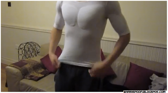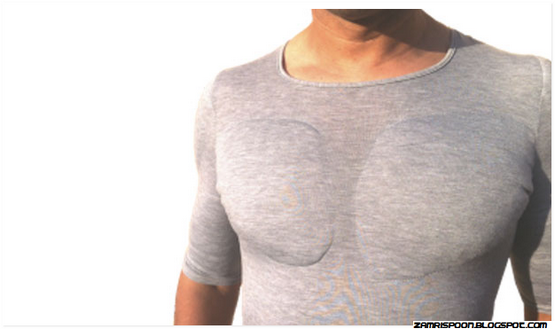 Aksesori ini bekerja dengan cara yang sama seperti bra tiruan untuk wanita, kaos dalam untuk lelaki ini memiliki pectorals lembut, bahu, bisep dan triceps untuk membuat anda kelihatan seperti telah latihan secara rutin.