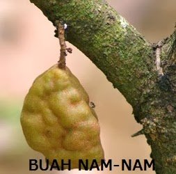 BUAH NAM-NAM (Cynometra cauliflora) merupakan sejenis buah yang dihasilkan oleh pokok Nam-nam daripada keluarga Leguminosae yang jarang dijumpai atau kurang dikenali oleh masyarakat kita. Penulis blog buat kali pertama terjumpa pokok buah Nam-nam ini atau juga dipanggil Buah Katak Puru ketika membuat lawatan kerja di Kg Orang Asli Peta di Mersing, Johor iaitu pada tahun 2001 dimana pada masa itu bertugas disana. Pada mulanya saya menyangka ia adalah buah dari Hutan Endau iaitu sejenis buah agak pelik kerana tidak pernah nampak. Apa pun seterusnya saya ada membuat pertanyaan kepada salah seorang penduduk disitu (En Lamson – terkini dimaklumkan dia sudah meninggal dunia) yang mana dia kata ia sejenis buah nadir. Pada masa itu saya masih kurang pakar dalam hal tanaman tidak seperti sekarang. Memang setelah dibuat semakan didapati bahawa buah tersebut adalah sebenarnya pokok katak puru atau pun pokok buah nam-nam yang dipercayai berasal daripada Asia Tenggara dan India. Pokok dan buah katak puru ini tergolong dalam kumpulan nadir kerana ianya semakin sukar untuk dijumpai. Pokok katak puru mempunyai ketinggian yang sederhana iaitu kira-kira 3 – 4 meter. Ia jenis tumbuhan yang membesar dengan kadar yang sangat perlahan. Untuk ia mencapai ketinggian 2 meter ia mengambil masa lebih kurang selama 20 tahun. Pokok ini berbunga dan berbuah sepanjang tahun terutama jika berada pada tanah tepi sungai yang subur. Bunganya akan keluar secara berjambak pada bahagian pangkal batang, batang dan dahan. Semasa peringkat muda atau bersaiz kecil, buahnya berwarna hijau gelap dan setelah masak ia menjadi warna hijau kekuningan. Apabila buah nam-nam masak lazimnya ia akan gugur sendiri diatas tanah dan bijinya yang baik akan bercambah. Daripada kajian ujirasa yang dijalankan didapati buah ini mempunyai rasa masam manis dan sesuai dimakan dengan cicah garam atau makan begitu sahaja. Artikel malam ini saya menulis dalam “Anim Agro Technology” mengenai buah nam-nam yang tidak berapa cantik tetapi didakwa amat signifikan dalam mengenali buah tersebut sebegai sejenis buah nadir yang berpotensi untuk dikembangkan.