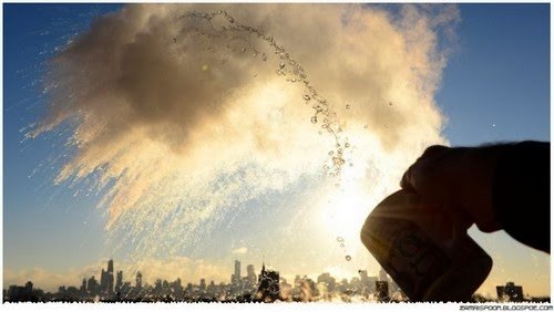 Dua hari yang lalu, kerana suhu turun menjadi-14F atau -25 celcius, Scott Harrison melemparkan sebaldi air panas ke udara. “Seorang rakannya mengatakan bahawa air panas berubah menjadi awan jika suhu udara cukup sejuk,” dia memberitahu kami, “jadi saya memutuskan untuk mencuba sendiri.