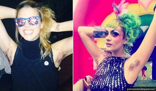Bukan rambut atau janggut, glitter tersebut kali ini ditaburkan di ketiak. Wanita-wanita dengan sengaja memanjangkan bulu ketiaknya kemudian memberikan kesan berkilauan dengan glitter tersebut.