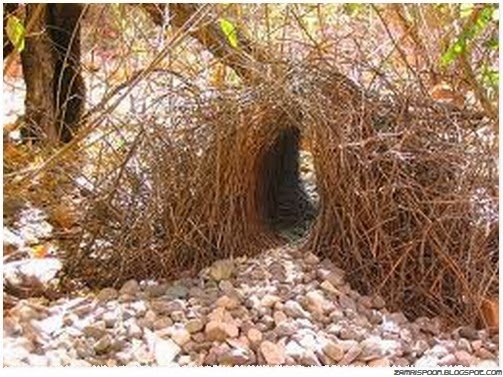 Mereka mampu membuat sarang yang indah dari pelbagai bahan yang ditemuinya untuk menarik burung betina . Tidak hanya ranting atau daun , barangan dari sampah seperti duit syiling , straw , tutup botol hingga serangga kecil juga digunakan sebagai hiasan sarang . Sarang nampak bersih itu disebut Bowers yang biasanya berbentuk U dibina dari ranting dan rumput serta permaidani lumut .