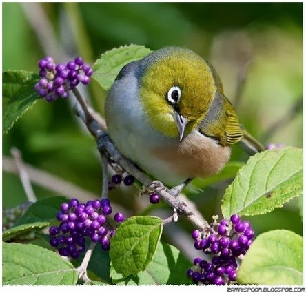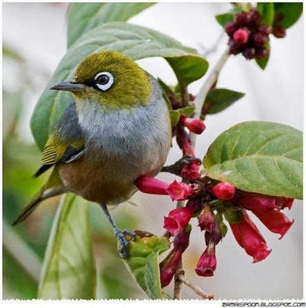 Burung tersebut mempunyai penampilan sama ketika dilihat dari depan dan dikenali dengan nama Silvereye. Matanya yang mempunyai motif bulatan putih nampak disatukan garis hitam yang memberikan kesan galak. Burung itu hidup di New Zealand, Australia dan Kepulauan Pasifik, termasuk Fiji.