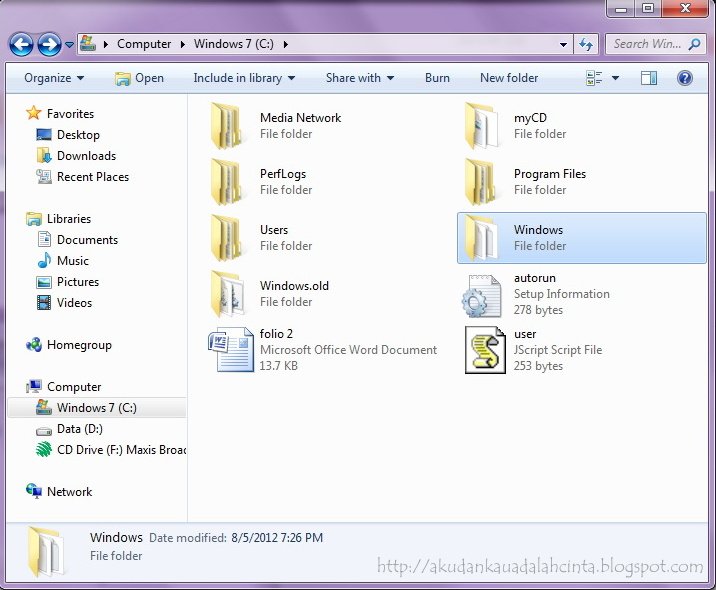 6) pastu korang cari sebuah folder yang bernama “Windows” dan double klik pada itu.