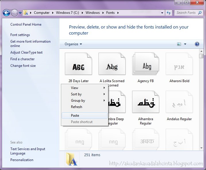 8)Pastekan font tersebut dalam folder tu. Mungkin akan ada beberapa notification, awak klik saja ok ..