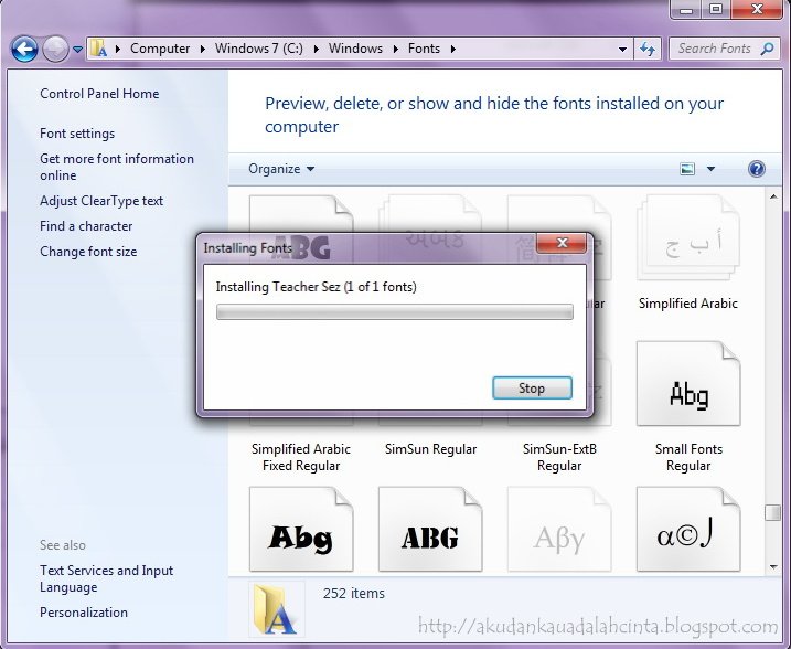 hai saudara dan saudari yang kacak dan cantik.. hehe.. apa khabar? u ollz sihat tak? okay… hari ni jannah nak tunjukkan cara install “font” yang korang download ke dalam komputer.. cara dia simple jee kan.. maybe ramai yang dah tau..api tak apalah.. jannah nak share kepada kawan-kawan yang masih blur atau tak tau lagsung.. di samping itu, kalau nak download ribuan font yang menarik dan kreatif korang bole layari laman web ini dan KLIK SINI