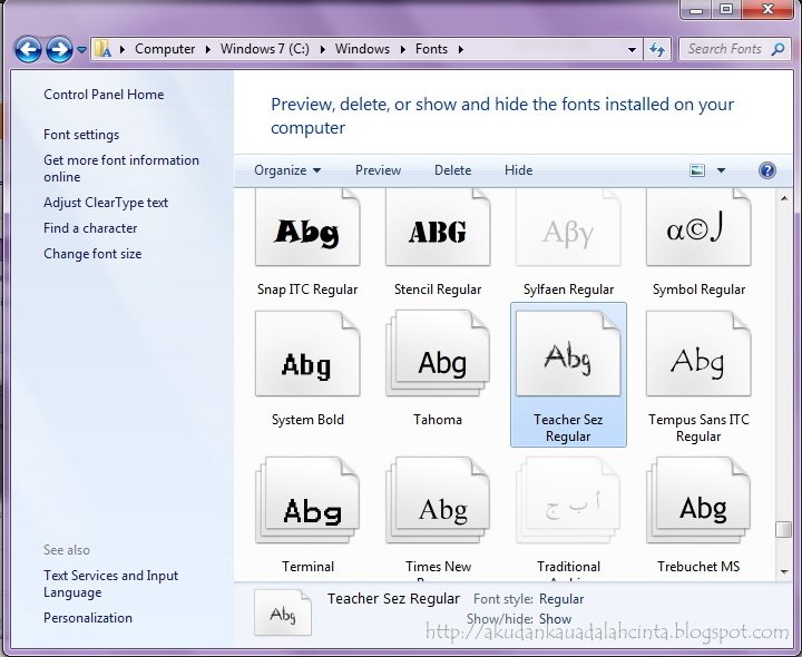 2) double klik di “teacher_sez” atau korang punya font folder tu..