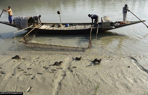 Nelayan yang terletak kira-kira 130 kilometer dari Bangladesh ini, setiap hari pergi ke sungai dengan sebuah kumpulan memberang, yang akan menggiring ikan ke dalam sebuah perangkap berupa jaring.