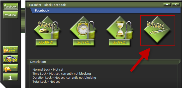 - sekarang apa yang anda perlu lakukan ialah klik button TOTAL LOCK (butang yang terakhir) dan selepas itu dia akan bertanya tempoh masa anda menyekat aplikasi facebook. selepas tu anda tekan button OK.