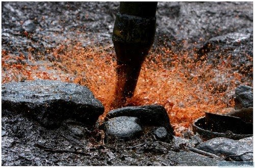 Foto-foto yang menarik ini di ambil di Lombong Minyak Versi Tradisional di Jawa, Indonesia. Mereka ini adalah perkerja yang bekerja lombong minyak mentah.