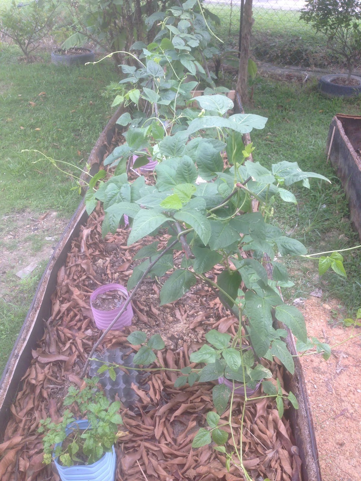 Semai kacang panjang dalam 4 beg poli, 2 biji benih setiap satu. Semai timun dalam 3 beg poli, 2 biji benih setiap satu 7.7.17 : semaian kacang panjang dan timun 23.7.17 : hanya sepokok pokok timun yang tumbuh