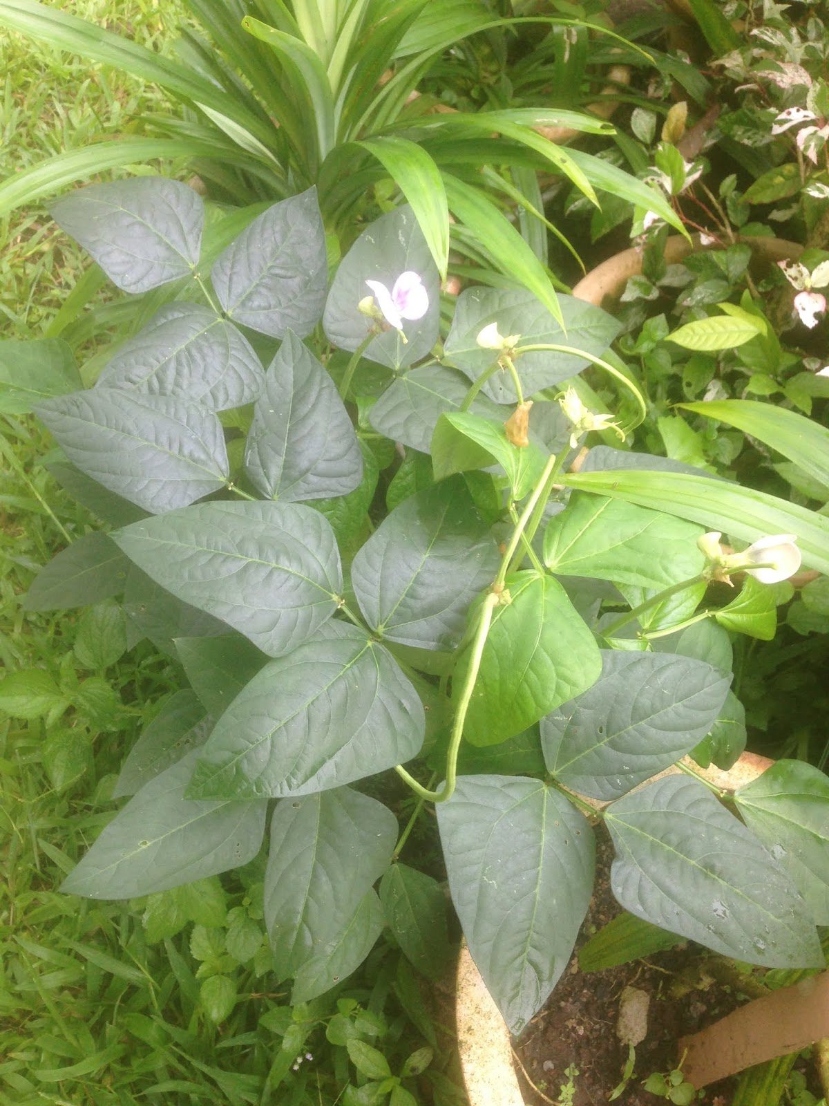 Pokok kacang panjang renek yang sudah berbuah Bunga pokok kacang panjang renek berwarna putih keungguan ( pH tanah ? ) Daun muda dan daun matang pokok kacang panjang renek serta buah kacang panjang renek