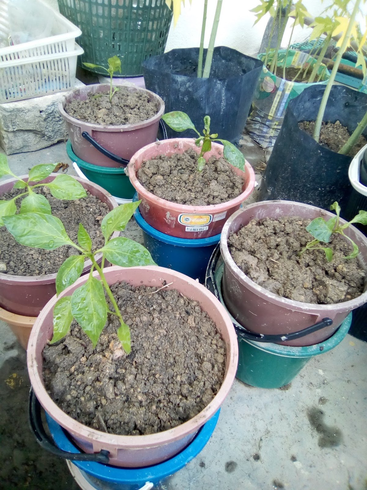 Hari ini, pindahkan 5 anak kapsikum merah ke NR1 27.4.17 : KTR 4.5.17 : KTR 14.6.17 : sudah berputik bunga