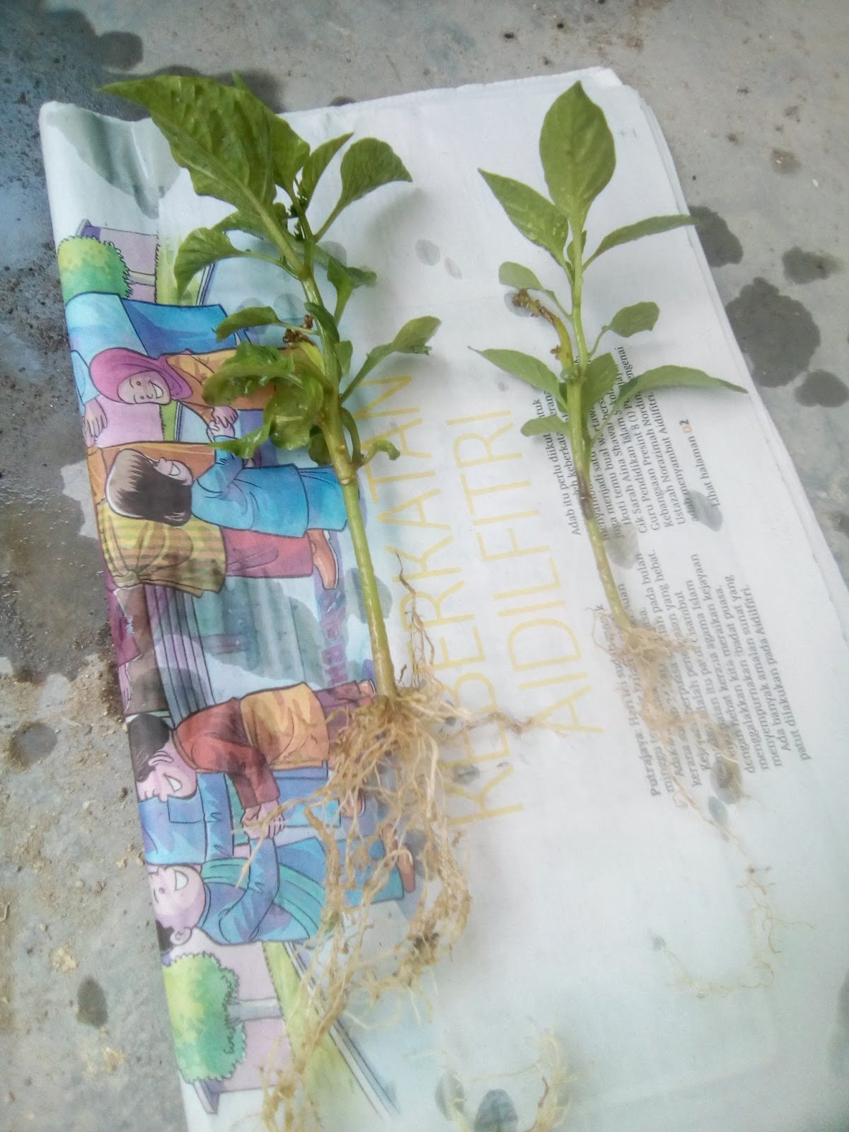 Semaian cili besar, cili api kampung, kapsikum kuning, kapsikum merah dan kacang panjang menggunakan pot semaian dari suratkhabar. Benih cili dan kapsikum direndam 10 jam. 15.4.18 : 24.4.18 :