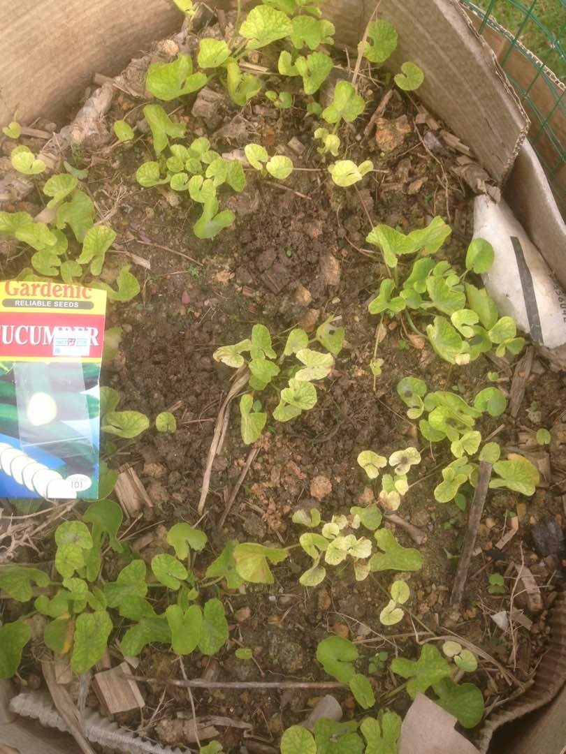 Semai kacang panjang dalam 4 beg poli, 2 biji benih setiap satu. Semai timun dalam 3 beg poli, 2 biji benih setiap satu 7.7.17 : semaian kacang panjang dan timun 23.7.17 : hanya sepokok pokok timun yang tumbuh
