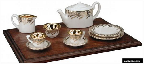 Cawan disalut dengan 22 karat emas dan bernilai � 137 untuk satu set 8 buah.