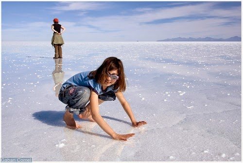 Walaupun dari gambar kelihatan sangat panas , sebenarnya suhu di Salar de Uyuni cukup panas , hanya antara 13 darjah hingga 21 darjah celcius . Setiap tahun para pelancong datang ke Salar de Uyuni untuk menyaksikan fenomena cermin raksasa tersebut . Selain cermin di sana pengunjung Salar de Uyuni juga berkesempatan untuk menyaksikan kumpulan burung flamingo merah muda yang memang menjadikan kawasan dataran garam ini sebagai habitat mereka .