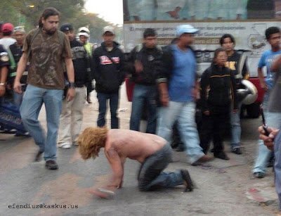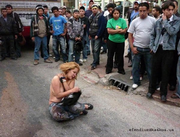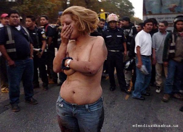 Di Guatemala, Amerika Tengah, ada buskota yang penuh penumpang diserang sama gerombolan perampok bersenjata. diantara perampok tersebut ternyata ada ceweknya, setelah perampokan gagal si cewek perampok ketinggalan temen2nya yang kabur dan doi digebukin tanpa ampun plus di bugiliiiin, tapi si cewek ahirnya bisa di selamatkan polisi yang baru tiba di TKP
