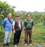 Penanaman Jambu Batu oleh En Chong telah dilakukan semenjak 15 tahun lalu dimana kini seluas 25 hektar telah ditanam dengan jambu ini. Tanaman jambu batu ini daripada Jambu Batu Berbiji Varieti Kampuchea (GU8) yang mana ia merupakan varieti yang paling popular semenjak lebih 20 tahun lalu ditanam di Malaysia. Berbanding dengan jambu batu varieti Lohan (GU16) yang baru beberapa tahun di perkenalkan di Malaysia, En Chong berpendapat dia lebih suka menanam jambu batu jenis ini kerana buahnya lebih tahan lama jika ia dibanding dengan buah jambu batu lohan. Selain itu beliau kekal meneruskan dan menjaga pokok jambu batu varieti kampuchea ini kerana teknologi untuk menghasilkan buah jambu batu yang rangup, manis dan tahan lama ini memang menggunakan kombinasi separa organik dengan ilmu untuk menyediakan baja organik diladangnya. Semasa dikebun jambu batu beliau temannya Wong juga berbincang dengan penulis blog beberapa teknologi pengurusan tanaman jambu batu tersebut (Sila lihat foto disebelah). Penulis blog telah menerima soalan bagaimana untuk meningkatkan kesuburan tanah bekas lombong ini untuk jangkamasa lebih panjang terutama apabila hasil jambu terjejas pada musim panas dan kering. Dicadang oleh saya agar beliau menggunakan ‘plant gel’ yang diletakkan didalam lubang disekeliling pokok jambu beliau dan bagaimana cara mengamalkannya diperjelaskan. Beliau sangat ‘exited’ dengan penerangan yang penulis blog diberikan dan akan melakukannya sebaik sahaja bekalan gel pertanian dibeli. Disyorkan juga agar beberapa pokok di buat cantasan semula untuk mendapatkan sistem percabangan seimbang dan sesuai untuk diuruskan. Bagi pokok muda yang disulam perlukan cantasan pembentukan seimbang seperti pakej amalan teknologi Jabatan Pertanian.