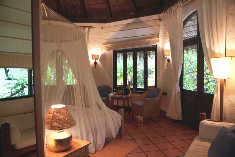 Beach villas and deluxe villas have open air garden bathrooms, for showers at sunrise or at night under the stars.