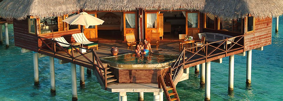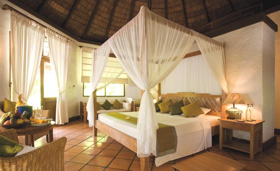 The all wood water villas offer extreme indulgence for those who are looking for exclusivity and seclusion. All water villas are fitted with Jacuzzi bathroom overlooking the turquoise waters of the lagoon, plunge pools on the large sundeck, four poster beds and luxurious furniture, fittings and amenities.
