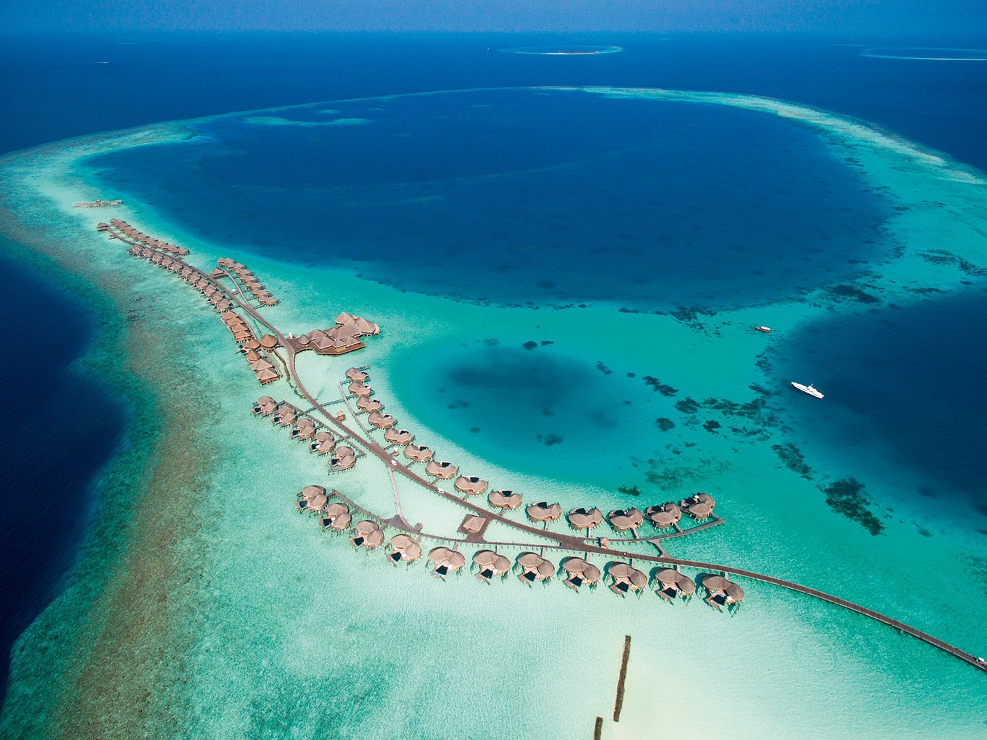 The island of the Maldives-their sand beaches spiling into the Indian Ocean’s electric blues-are seemingly untouched by time.This sense of unspoiled beauty prevails at Constance Halaveli, set on a private island.Villas, built with natural materials, blend into the splendid setting and float above the crystal lagoon, making the most of the vibrant aquatic sealife.