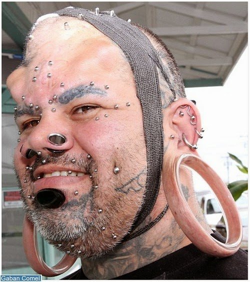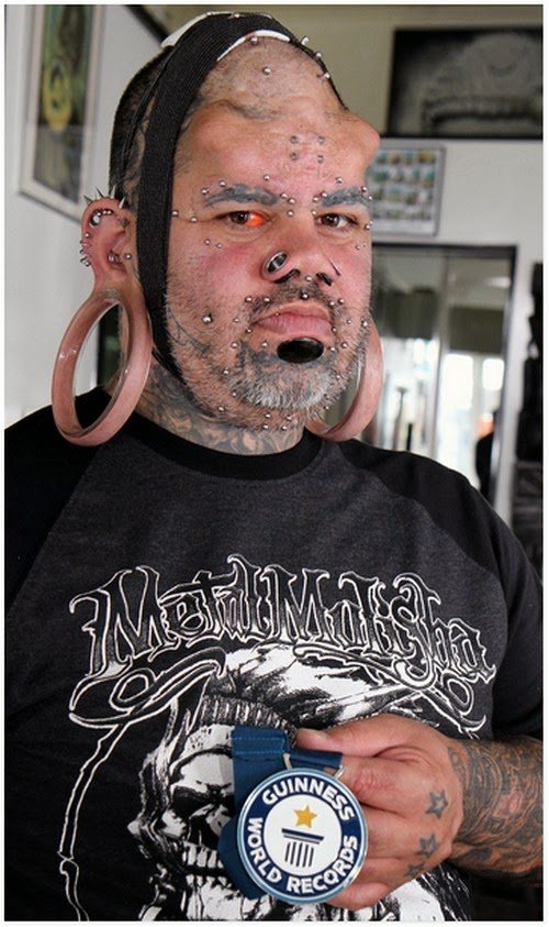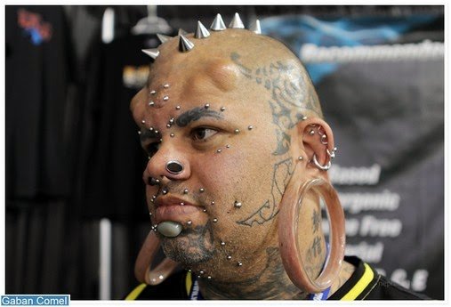 Malah, dia turut membelah lidahnya menggunakan flos gigi dan �sesungut� besi yang tajam di atas dahinya.