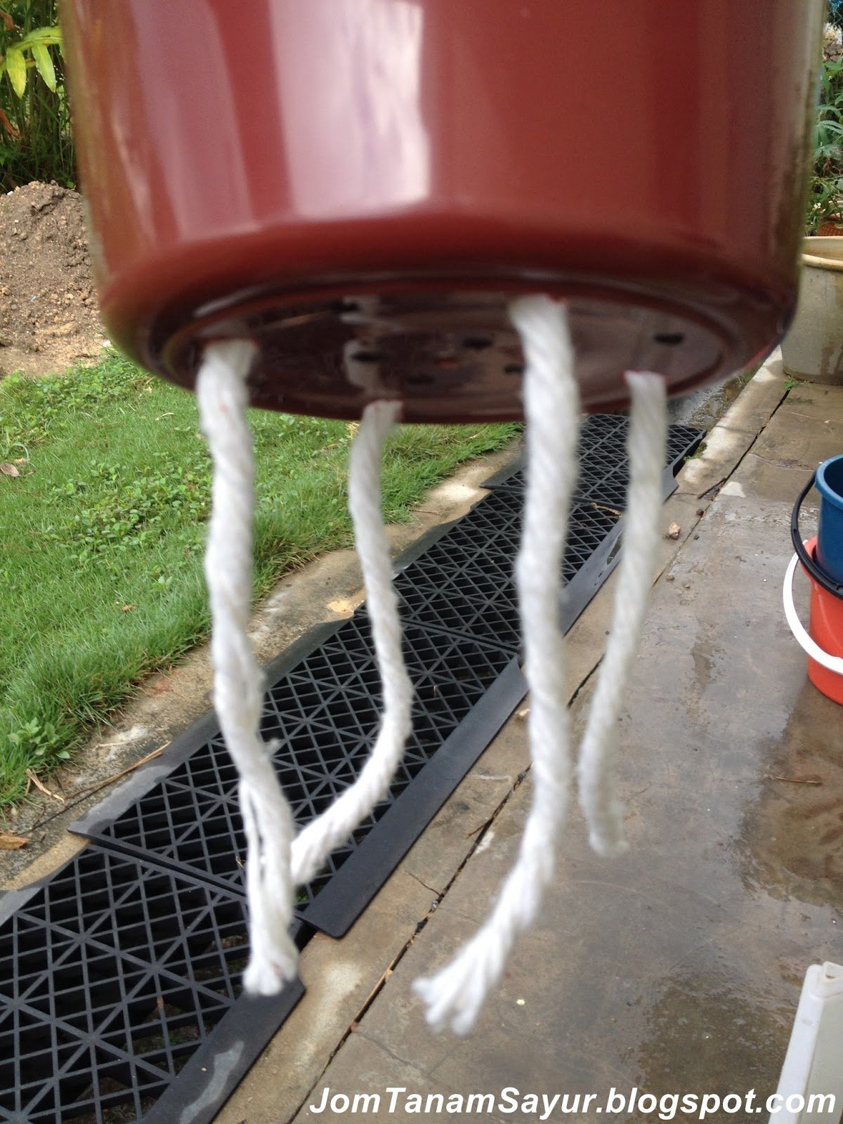 | Sumbu dijulurkan kebawah baldi tempat tanaman dan panjang sumbu boleh mencecah dasar baldi takung |