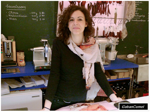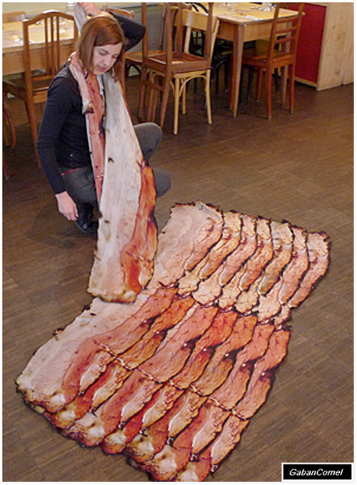Selendang kreatif direka oleh Natalie Luder kelihatan seperti sekeping daging bakar.