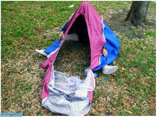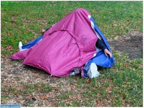 Australian design firm Sibling melancarkan the Walking Shelter iaitu khemah disimpan di dalam sepasang kasut. Khemah camping ini dibungkus dalam petak jaring meliputi kasut dan boleh digunakan dimana-mana sahaja.
