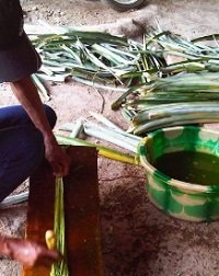 Bermula dengan daun nanas diambil dari kebun ia kemudian diracik atau digunting halus, direndam semalaman sebelum direbus (Sila lihat foto disebelah). Bahan berkenaan dibiarkan selama dua hari sebelum dikisar menggunakan mesin industri bagi mendapatkan serat paling berkualiti. Kemudian serat nanas yang sudah dikisar dimasukkan dalam acuan lain sebelum dikeringkan. Jika cuaca panas selalunya proses pengeringan serat untuk dijadikan kertas hanya mengambil masa sehari. Kesemua proses dari awal ini mengambil masa seminggu dan daripada lima guni putih daun nanas lazimnya ia boleh menghasikan 100 keping kertas nanas. Kebiasaannya dia membuat mengikut saiz 17 x 24 inci bagi memudahkan cara penghasilan dalam membentuk pelbagai saiz cenderamata. Menyentuh bekalan bahan mentah khususnya daun nanas, Azra berkata, ia diperoleh mudah daripada kebun penduduk kampung di sekitar Batu Pahat. Ia sekali gus membantu mengurangkan pencemaran alam sekitar. Beliau selalu pergi sendiri ke kebun nanas milik pekebun untuk mendapatkan daun. Kebanyakan pekebun terbabit tidak menggunakan daun nanas sebaliknya hanya mengambil buah nanas saja. Biasanya daun nanas dibuang atau dibakar. Kini sambutan cenderamata ini amat menggalakkan hasil penjualan dalam talian dan pameran kraf di sekitar Johor dalam sebulan saya mendapat tempahan 2,000 hingga 3,000 unit cenderahati termasuk dari Pahang serta Melaka. Bekalan bahan mentah setakat ini sentiasa mencukupi, tetapi saya mempunyai kekangan dari segi tenaga kerja membuat kertas nanas kerana penghasilannya rumit dan remeh berbanding kraf lain. Usaha penulis blog menulis semula info teknologi memproses daun nenas menjadi cenderamata atau kraftangan ini perlu digalakkan dengan lebih aktif. Ini akan memberikan pendapatan tambahan jika lebih ramai yang mengusahakan dan pasaran boleh disusunatur dengan lebih bail lagi. Semuga anda mendapat info terbaik membaca artikel dalam anim agro technology kali ini. Wasallam!!!..