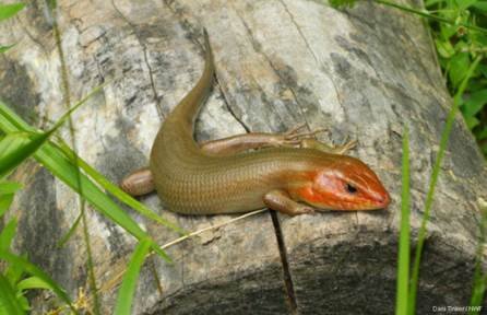 Broad-headed skink on top of a log. Photo by Dani Tinker.
