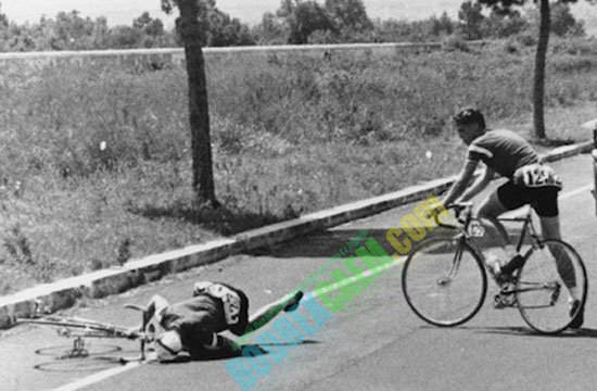 Pesepeda asal Denmark, Knut Jensen jatuh dari sepedanya saat panas terik di Olimpiade 1960 di Roma, Italia. Kemudian kepalanya terbentur ke jalan raya, hingga akhirnya nyawa Jensen tidak bisa diselamatkan dari kecelakaan tersebut beberapa hari kemudian.