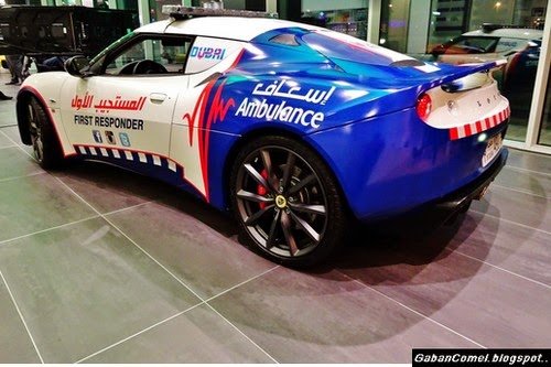Ia adalah kereta sport Lotus Evora, yang ditukar menjadi ambulans untuk beroperasi di Dubai. Kereta sport ambulans yang sebelumnya telah dipamerkan di pameran Gitex tersebut sudah diubahsuai di beberapa bahagian dan mampu mencapai kelajuan maksimum sehingga 300 km per jam.