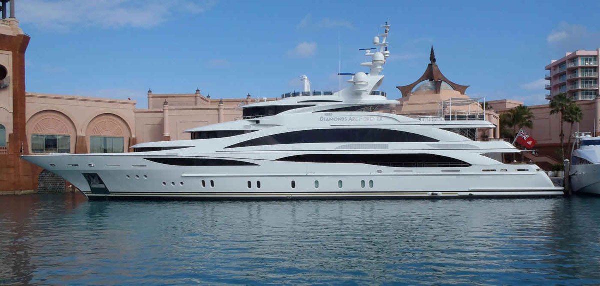 Just like her name says, Diamonds Are Forever is a luxury yacht, inspired by James Bond. Actually, its owner Mr. John Staluppi, who is a big fan of James Bond, christened yacht and made it fit for 007 agent himself. This 61m (200-foot) long Benetti Custom motor yacht, that was built last year,
