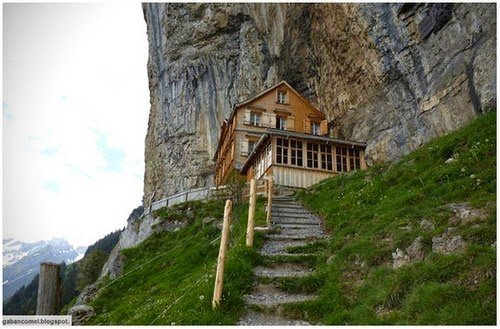 Berggasthaus Aescher adalah adalah satu-satunya hotel yang dibina di salah satu tebing pergunungan Alps, Switzerland. Guest house ini sudah berusia 170 tahun yang dibuat untuk mereka yang mencintai alam dan pemandangan indah dari bilik.