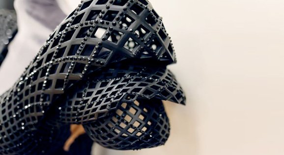 Printed off at 3Dprinting marketplace Shapeways, the floor-length nylon gown was made using selective laser sintering (SLS), where material is built up in layers from plastic powder fused together with a laser.