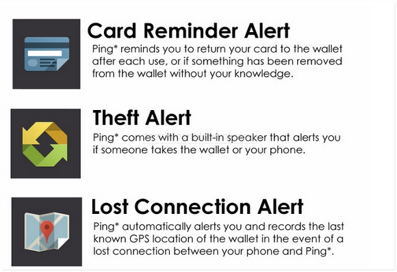 Jika aplikasi Ping dibuka di telefon anda , maka akan mengingatkan anda ketika kad anda belum ditempatkan kembali ke dompet . Untuk mengetahui lebih lanjut , sila periksa pada laman kempen di Kickstarter .