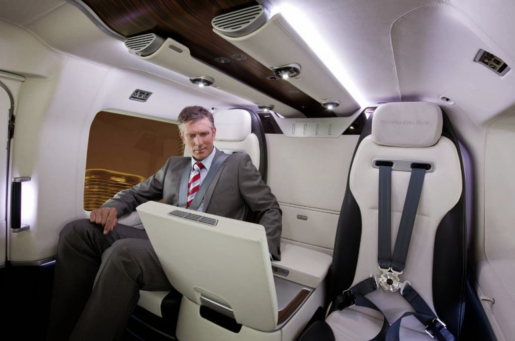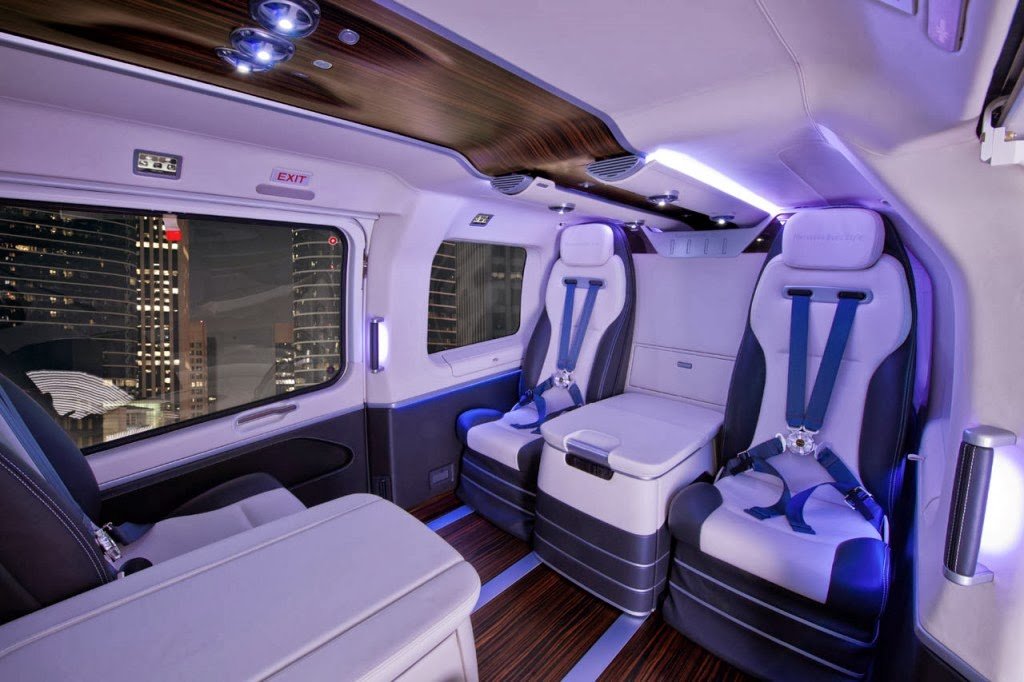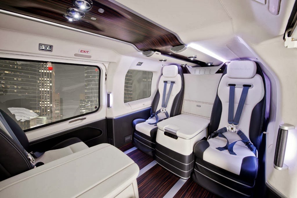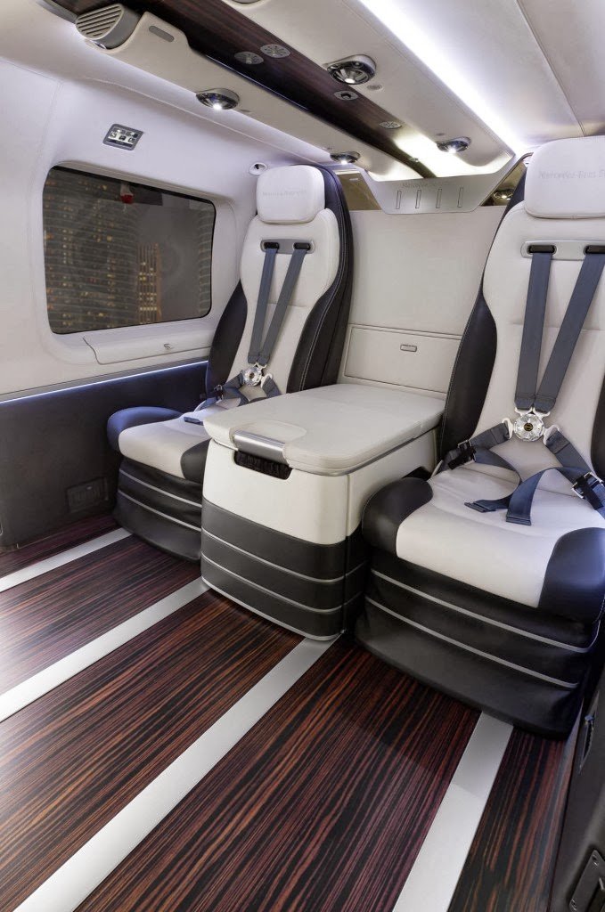 One year after its concept version was launched, the first EC145 Mercedes-Benz Style helicopter has been unveiled in Geneva at the European Business Aviation Convention & Exhibition (EBACE). Its modular interior was made in Como, Italy, at the Mercedes-Benz Advanced Design Studio, and it is inspired by the luxe saloons of the German automaker.