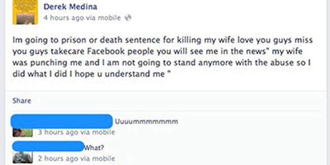Teman-teman Facebook Derek langsung syok mengetahui tragedi ini. Derek secara sukarela menyerahkan dirinya ke kantor polisi. Derek Medina membunuh istrinya tercinta, tanpa pernah berpikir panjang bahwa seharusnya dia tidak perlu melakukan tindak kejahatan seperti ini. Sungguh malang nasib Jennifer ya. Semoga wanita dengan senyum tulus ini damai di sisi Tuhan.