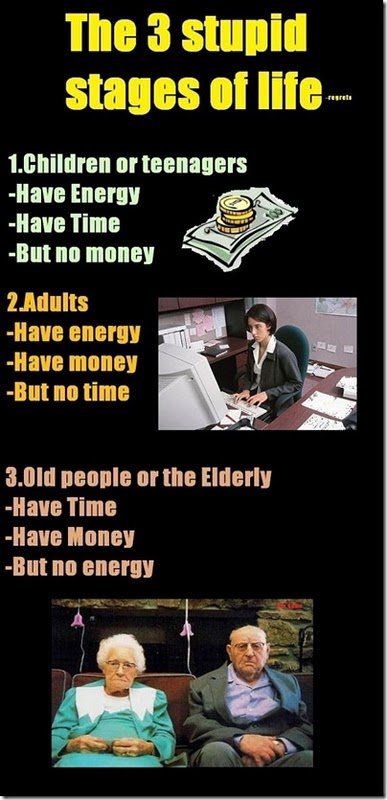 Khalis sedang melalui fasa kedua, dan rasa setuju sangat kekurangan masa. Tapi Khalis harap sangat, bila dah menjelang fasa tua, Khalis akan bertenaga untuk melalui hari hari.. Takkanla nak menyusahkan anak anak dan isteri isteri..ye tak?