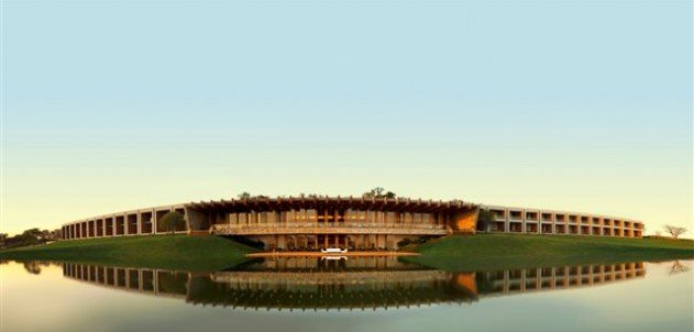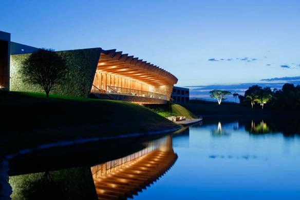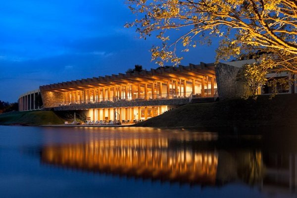 Captured in between lakes, forests and gardens, this highly contemporary structure shelters the Fasano Boa Vista Hotel just 100 km from Sao Paulo, Brazil. Spreading over 750 hectares, the property was designed by renowned architect Isay Weinfeld.