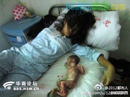 Ibu muda di China, Feng Jianmei, mengugurkan janinnya yang berusia tujuh bulan. Foto dirinya bersama sang janin beredar luas di dunia internet.