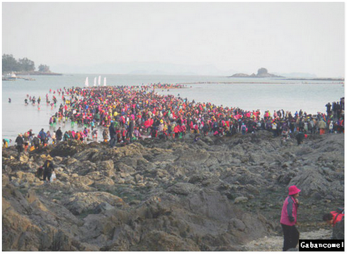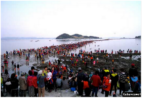 Malah, siapa yang mahu melepaskan peluang melihat detik-detik keajaiban dan tidak hairanlah sebaik lautan itu terbelah, orang ramai berpusu-pusu melintasi laluan itu dan meraikan rakan dari arah bertentangan berikutan penyatuan daratan kepulauan Jindo dan Modo. Tidak kurang pula yang mengambil kesempatan mencari tiram, rumpai dan hasil lautan lain.