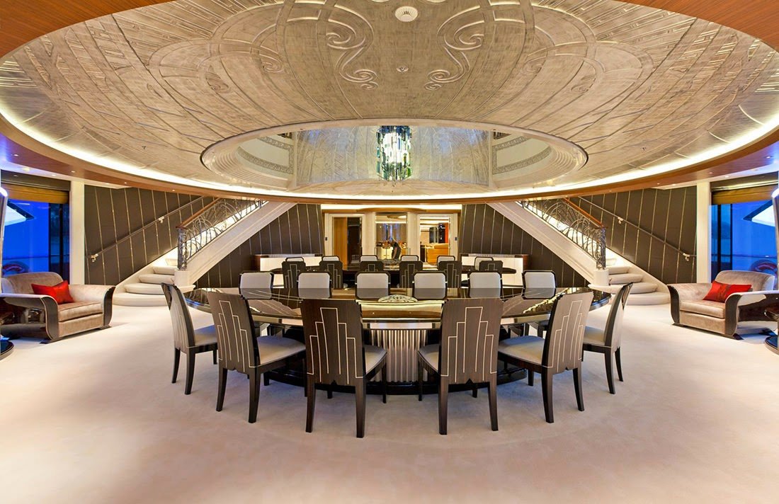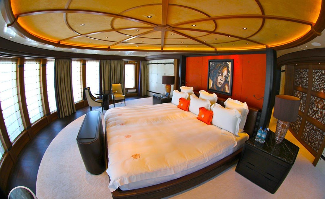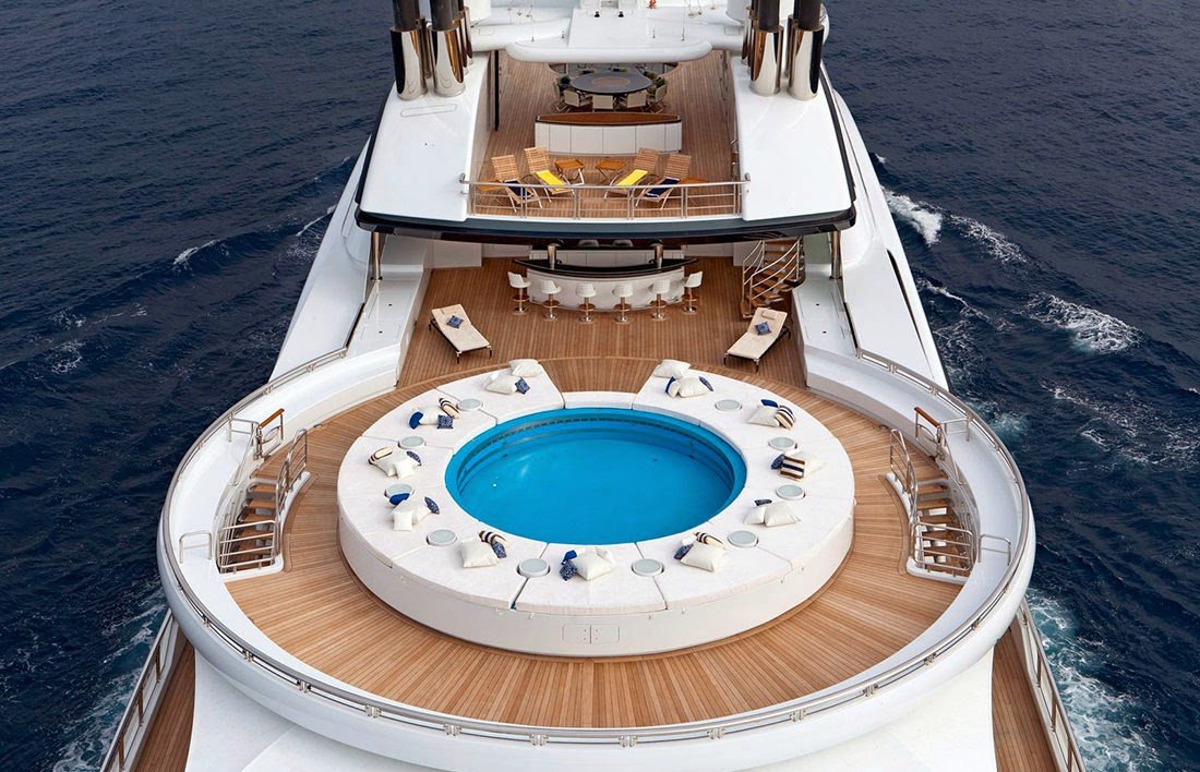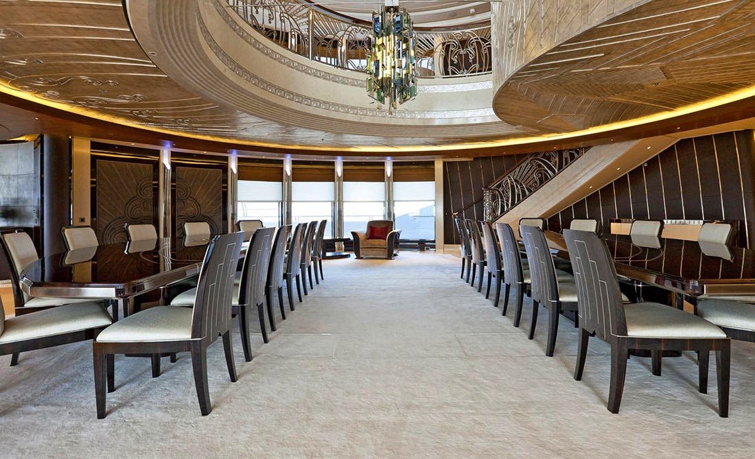 Designed in accordance with the maximum class of international safety regulations for passenger transport, the yacht Serene features seven decks, a hangar and two helicopter landing pads. The vessel also boasts a large sea-water swimming pool which can accommodate service craft and a submarine with a diving depth of up to 100 metres.