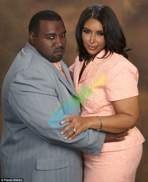 Dalam foto yang didapat dari laman Planet Hiltron, terlihat dengan jelas bagaimana bentuk tubuh Kim dan Kanye setelah menikah. Entah dengan tujuan mengkritik ukuran tubuhnya yang sedikit terlalu berisi atau bukan, foto yang sudah direkayasa ini menampilkan bagaimana ukuran tubuh keduanya bertambah dua kali lipat.
