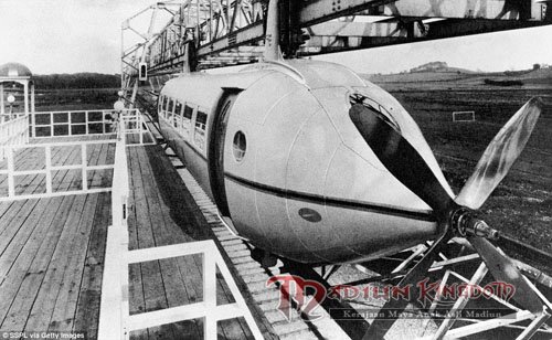 Ini adalah perjalanan mewah dengan kecepatan tertinggi teoritis 120mph: Sebuah kereta berbentuk cerutu efisien dengan karpet tebal dan lampu meja, dan jendela bertirai menyediakan kemewahan. Pintu geser – tinggi kemewahan – memungkinkan orang dan mematikan kereta di stasiun layang. Tapi ‘The George Bennie Airspeed Kereta Api, seperti yang diketahui, tidak ditakdirkan untuk kebesaran. jalur prototipe pernah mencapai lebih jauh dari 120m. Para investor tidak pernah datang, dan jaringan kereta api tradisional memiliki sebuah head-start dan reputasi yang Railplane tidak bisa bersaing.